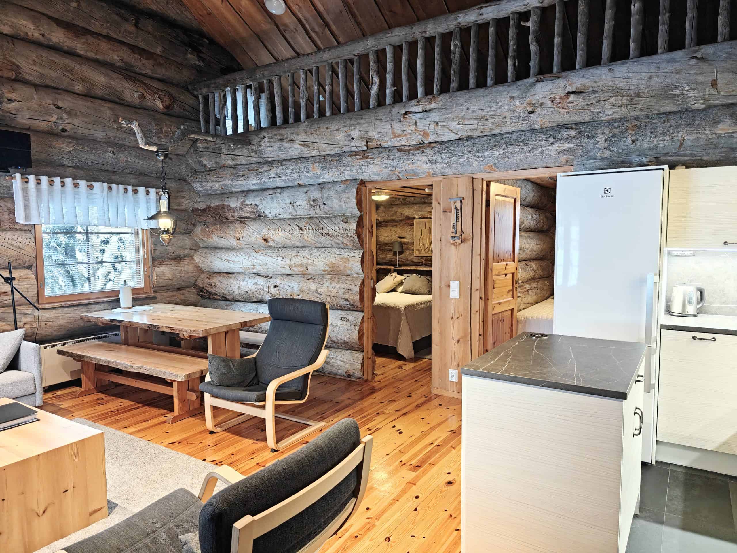 Rauhallinen sijainti, autokatos, suksienhuoltotila, tunnelmallinen sauna, kelohirsimökin tunnelma, hyvä varustus mökissä ( hiustenkuivaaja, shampoot ja pesuaineet jne.)